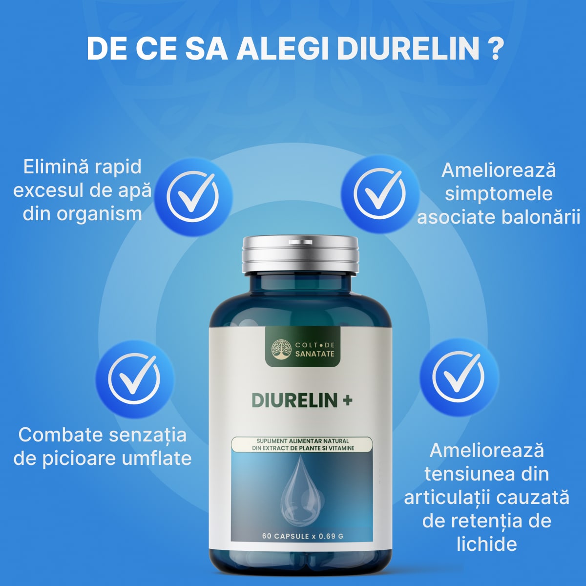 Descoperă Diurelin®, supliment natural cu 15 plante și minerale, creat pentru a susține eliminarea excesului de apă din organism. Ajută la reducerea balonării, a senzației de picioare umflate și sprijină funcția normală a rinichilor. Cu Diurelin, te simți mai ușor, mai energic și mai echilibrat, zi de zi. Ai grijă de corpul tău, în mod natural!
