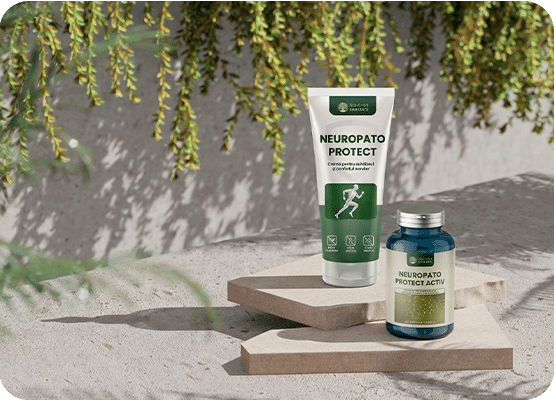 Alege Neuropato Protect® Duo pentru o abordare completă a neuropatiei: crema oferă efect local de calmare și hidratare, iar capsulele susțin funcționarea normală a sistemului nervos. Împreună, reduc senzația de arsură și amorțeală, îmbunătățesc mobilitatea și aduc confort natural pe parcursul zilei.