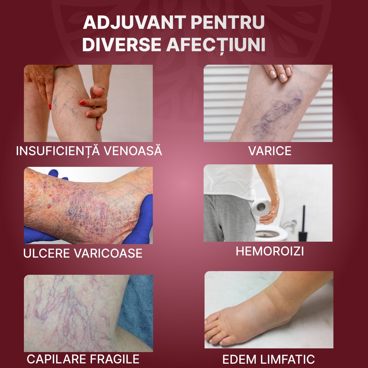Adjuvant pentru Diverse Afecțiuni - Susținere vasculară completă, adjuvant pentru: insuficiență venoasă, varice, ulcere varicoase, capilare fragile și hemoroizi.